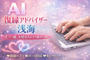 アドバイザー浅海のマニュアル、ノウハウを詰め込んだAIチャットを開始しました。有料会員様限定でご利用いただけます。いつでも何度でも使い放題なので、困ったときの一時的な対応としてぜひご利用ください。 有料会員はこちらから […] - [質問編] 2度目の復縁で気をつけることは?